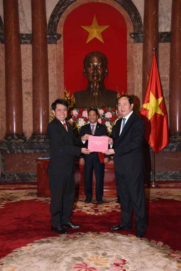 Mr. Vu Van Thanh – Deputy General Director of Hoa Sen group on behalf of the Group receive medals from President Tran Dai Quang at the Presidential Palace in the prisentation took place on the same afternoon.