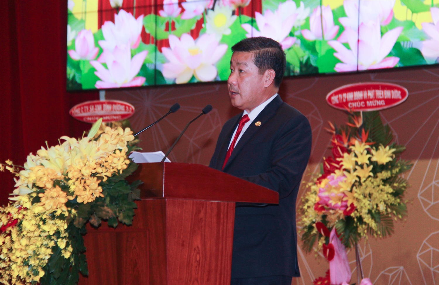 Mr. Mai Huu Tin, Chairman of Binh Duong Federation of Enterprises made a speech at the meeting