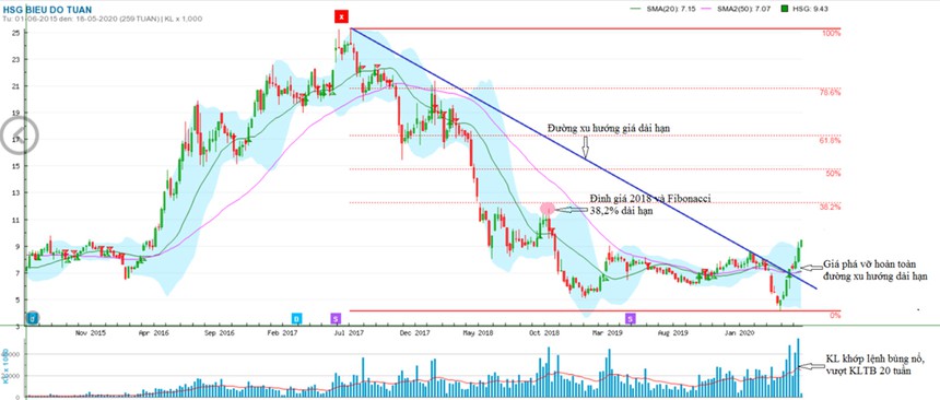 Biểu đồ cổ phiếu HSG theo tuần đến 15/5/2020