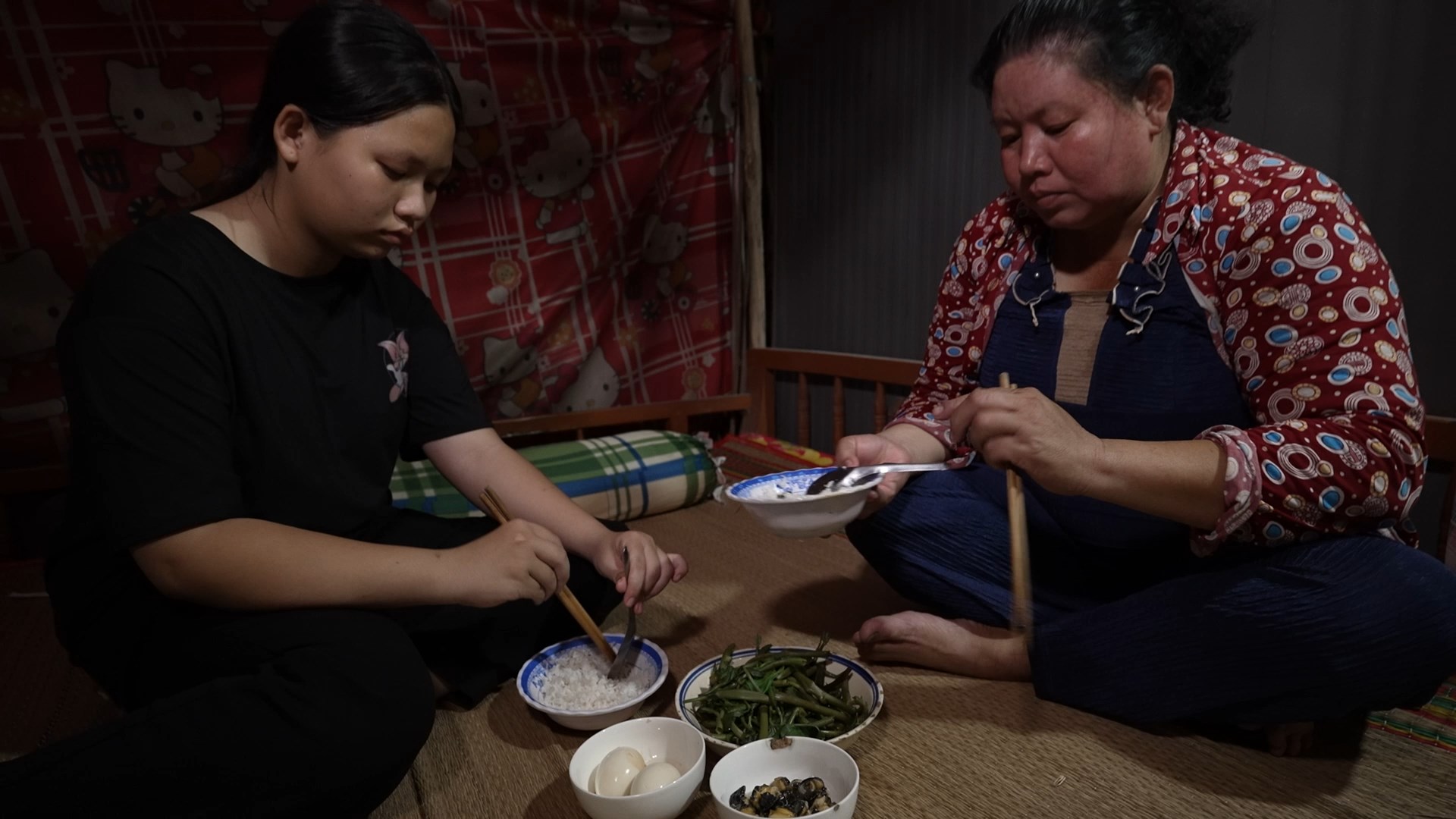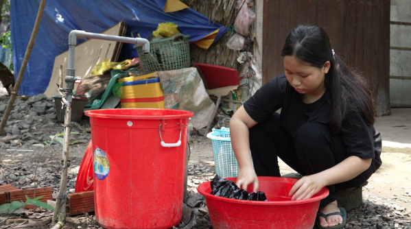 Bất kể nắng mưa, chị không dám nghỉ vì lo con đói. Chỉ những ngày đổ bệnh, chị mới được nghỉ ngơi một chút. Thương mẹ vất vả nên Cẩm Nhung thường tranh thủ sau giờ học đi bắt ốc giúp mẹ. Điều mà em sợ nhất lúc này là sức khỏe của mẹ không tốt, em không muốn một lần nữa mất đi người thân yêu nhất của mình.