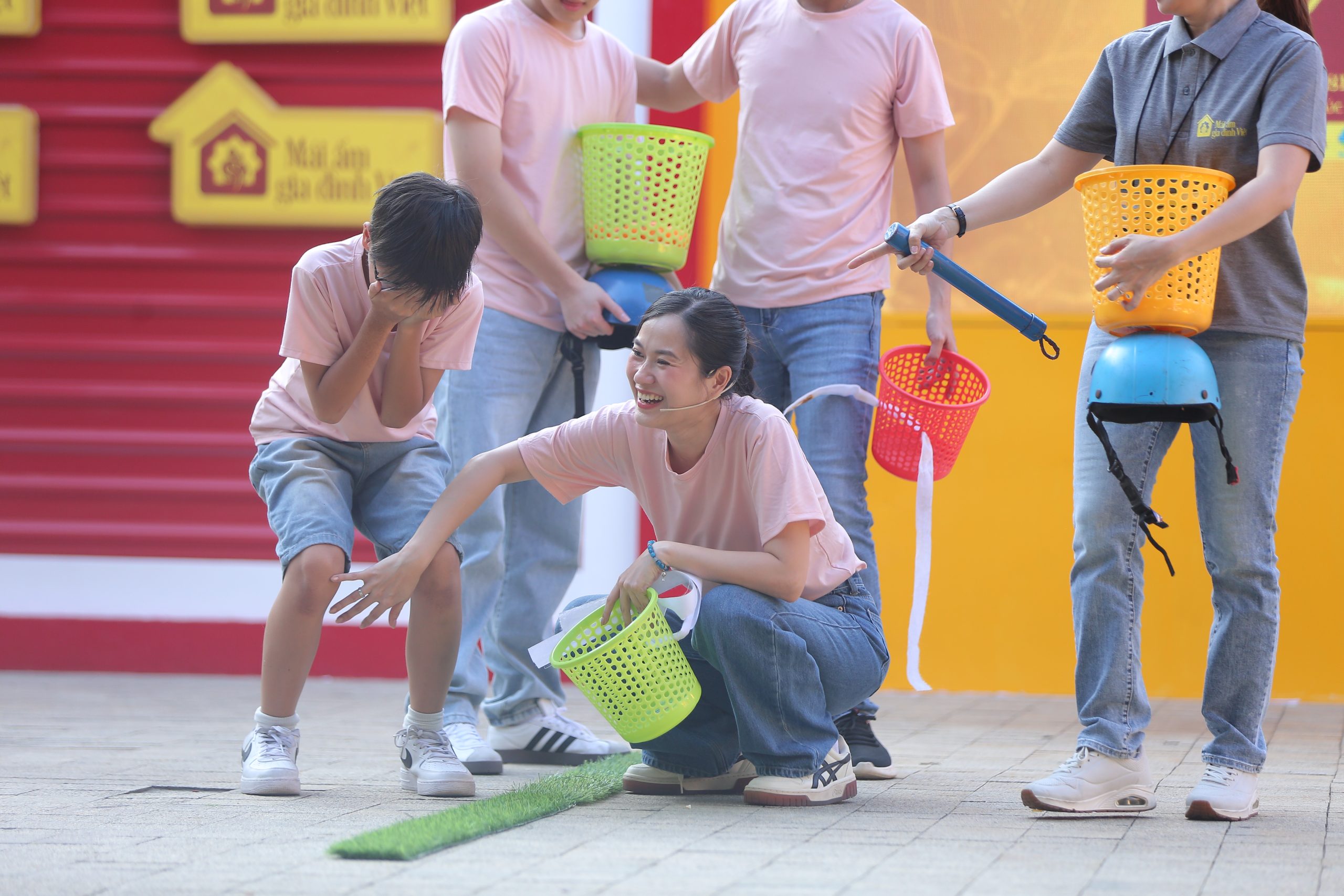 Ngay lập tức, Bánh Mỳ đã ngồi xổm thật thấp, thậm chí là không dám cử động để ba Đạt có thể ném bóng dễ hơn. Trong khi đó, Xá Xị đã quỳ xuống để chiếc rổ ở vị trí thấp hơn. Có khi em còn nằm hẳn xuống đất để đưa chiếc rổ đến thật gần với mẹ. Song, vì không ăn ý nên bóng vẫn cứ bắn ra ngoài, mất một lúc sau thì thử thách mới hoàn thành.
