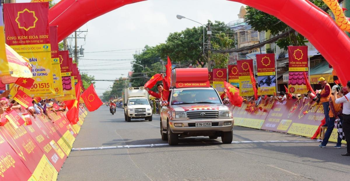Xe dẫn đầu đoàn đua tại điểm đích đến Kiên Giang