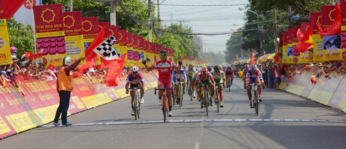 Vận động viên Lê Văn Duẩn (VUS1 TPHCM) cán đích đầu tiên ở chặng đua thứ 2