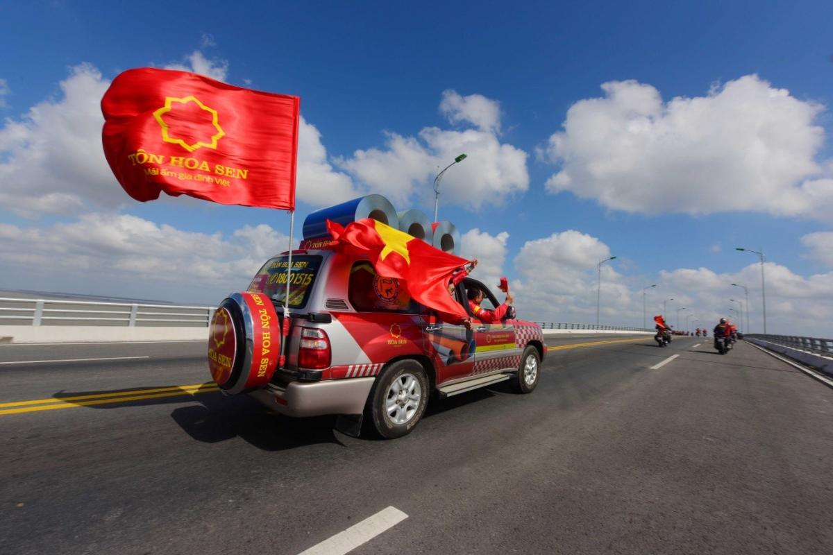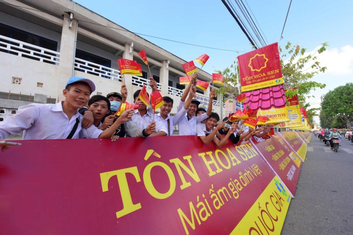 Nhân viên các chi nhánh thuộc Tập đoàn Hoa Sen chào đón đoàn đua