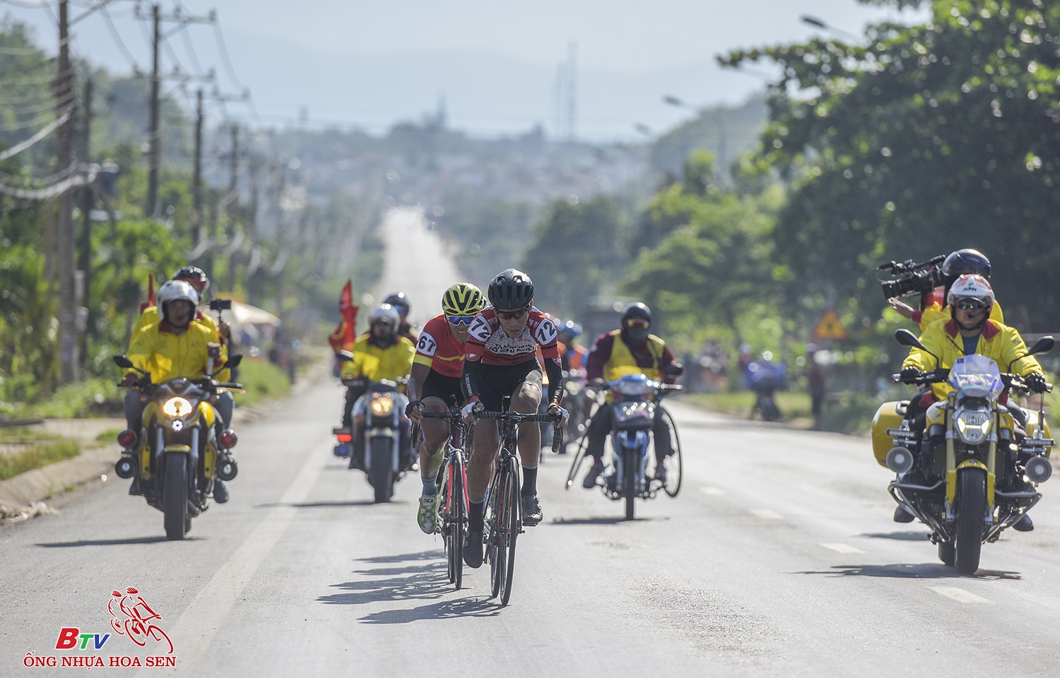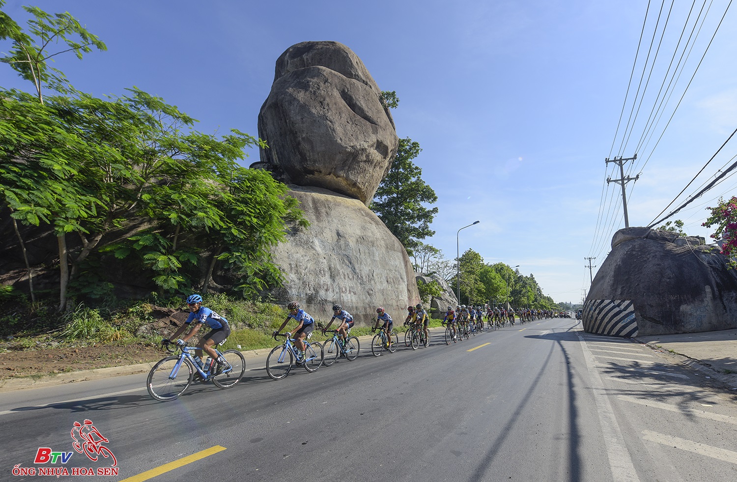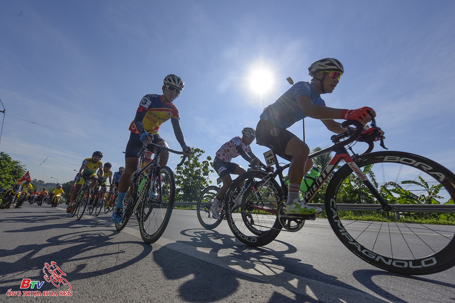 Dưới thời tiết nắng gắt, các tay đua nỗ lực hết mình để hoàn thành chặng cuối của Giải đua có lộ trình 133km