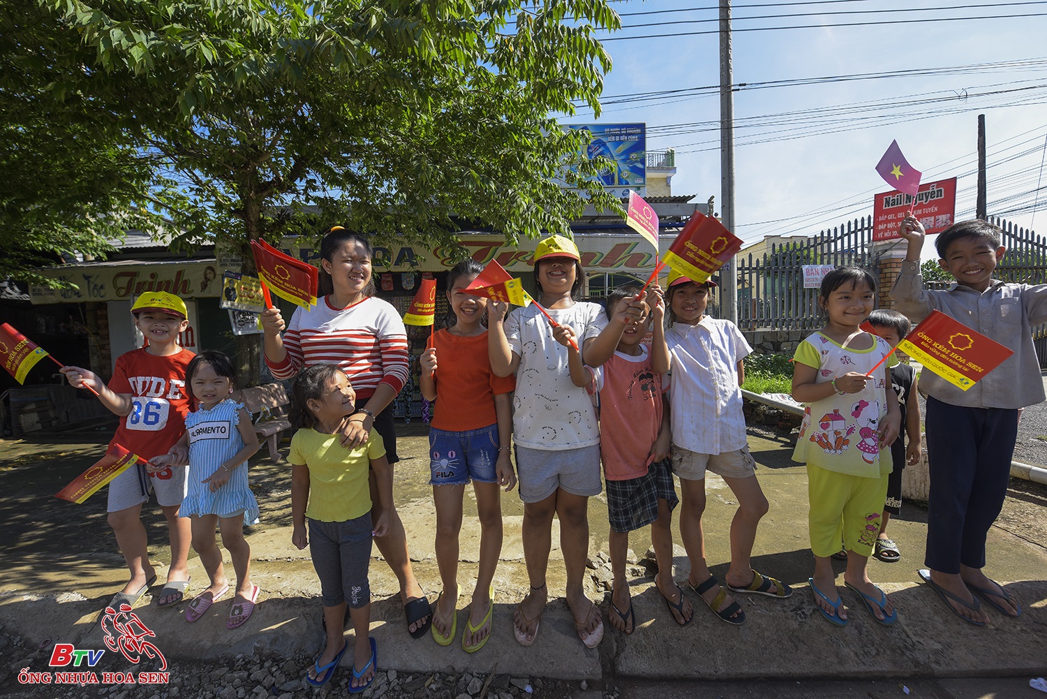 Các CĐV nhí hò reo chào mừng đoàn đua đi qua Đồng Nai