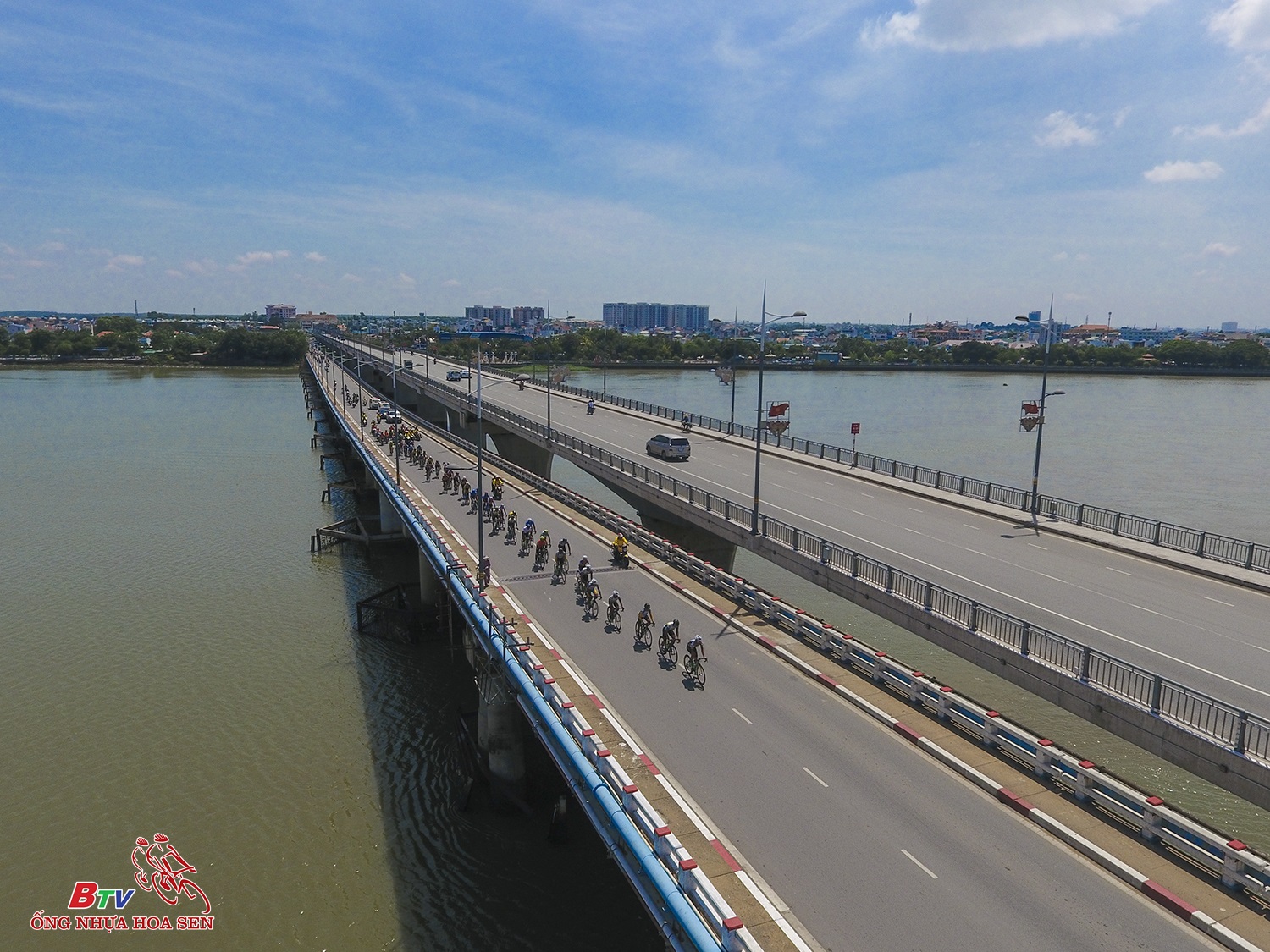 Đoàn đua đi qua cầu Hóa An bắc qua sông Đồng Nai