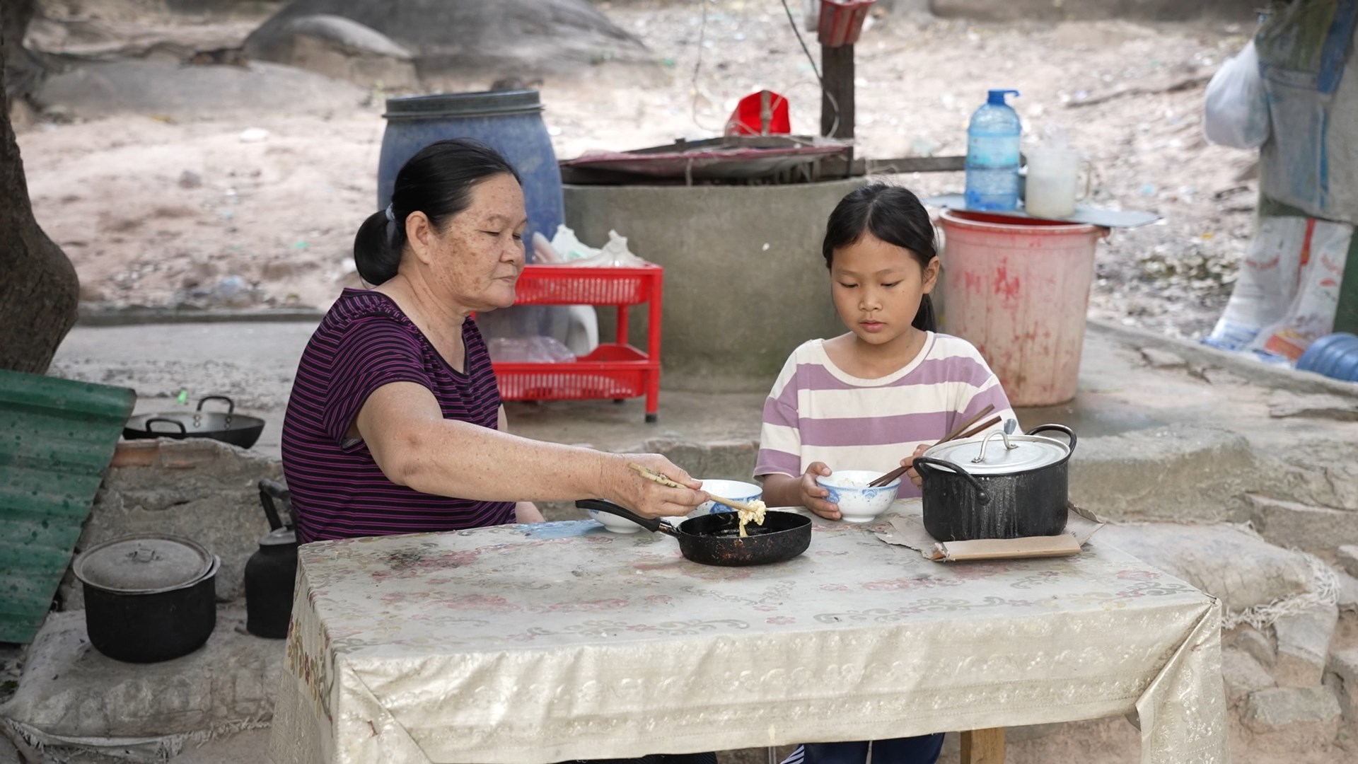 Bà Tình cho biết, mỗi ngày, bữa cơm của hai bà cháu chỉ vỏn vẹn 10.000 đồng với vài miếng đậu hũ và mấy quả cà muối. Những ngày được hàng xóm thương tình cho chút đồ ăn thì hai bà cháu xem như được đổi món. Căn nhà nhỏ phải đem bán để chạy chữa cho mẹ Trâm và ông ngoại nên giờ đây, hai bà cháu sống nương nhờ một người quen. Điều khiến bà Tình lo sợ nhất chính là một ngày nào đó người ta lấy lại nhà, hai bà cháu không còn nơi sinh sống nữa.
