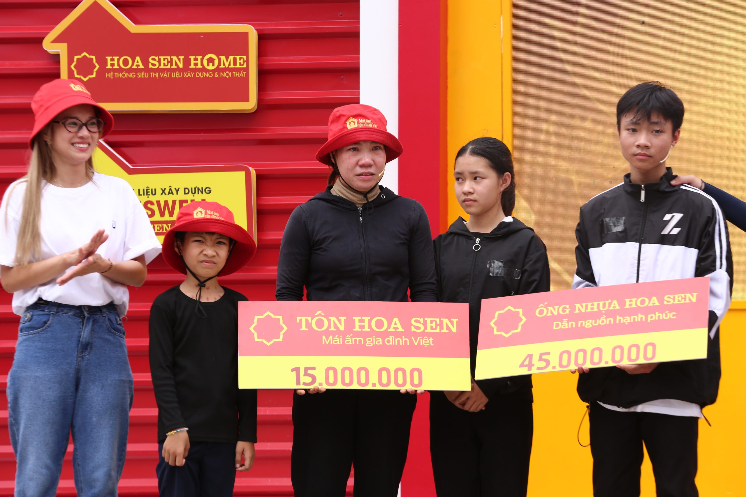 Nhìn ngôi nhà cũ dột, nhà vệ sinh dựng tạm vô cùng bất tiện nên Tập đoàn Hoa Sen quyết định hỗ trợ xây tặng gia đình một nhà vệ sinh, đồng thời lợp lại mái tôn mới. Ngoài phần thưởng trong chương trình, nhà tài trợ luôn mong muốn đồng hành nhiều hơn, góp phần giúp những mảnh đời khó khăn có cuộc sống ổn định hơn.