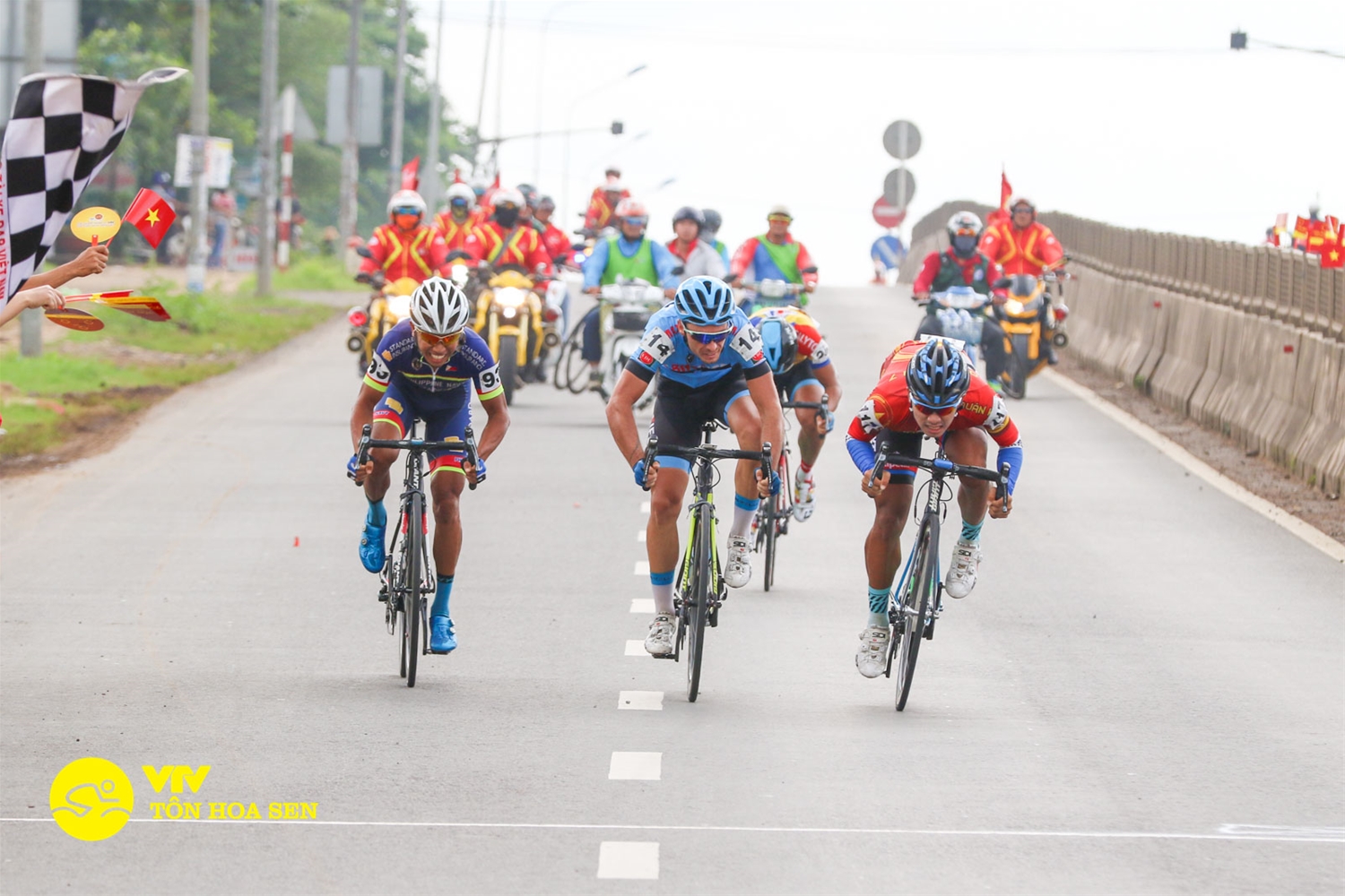 Chỉ còn cách đích 20km, ba tay đua Phan Tuấn Vũ đội Cần Thơ, Nguyễn Thành Tâm đội Hạt Ngọc Trời, Nguyễn Minh Luận đội Vĩnh Long tăng tốc hình thành tốp đầu cách xa các VĐV tốp sau với vận tốc 50km/h.