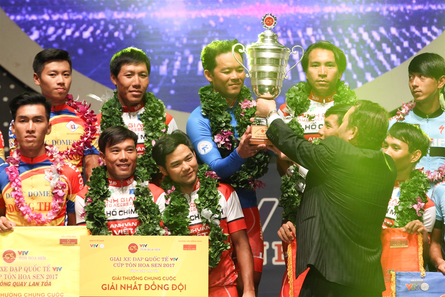 Tiếp đến, trao giải thưởng đồng đội dành cho đội có tổng thời gian hoàn thành chặng đua ngắn nhất. Giải nhất thuộc về đội Anh Văn hội Việt Mỹ, giải nhì thuộc về đội Dược Domesco Đồng Tháp và giải ba thuộc về đội Bike Life VDC.