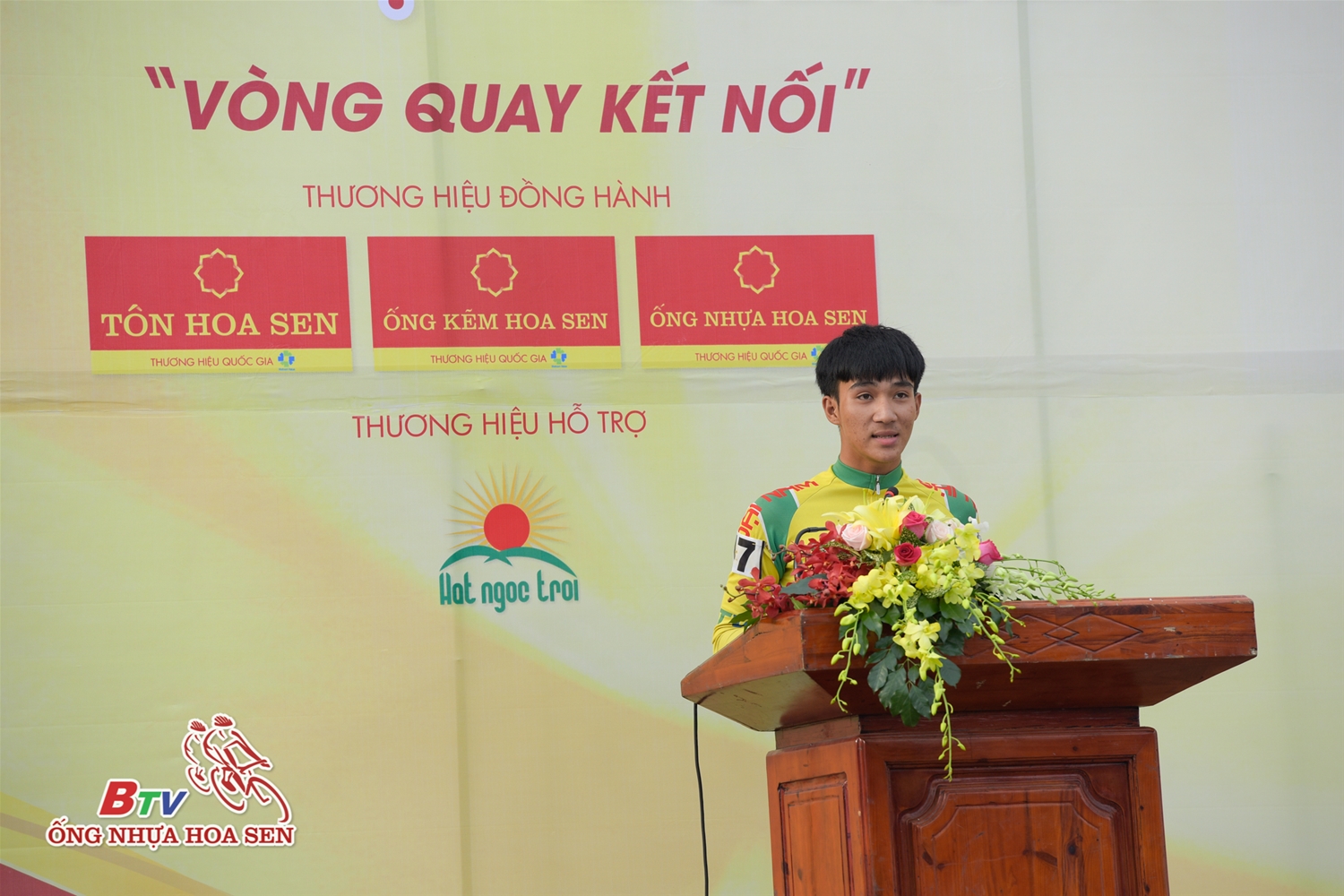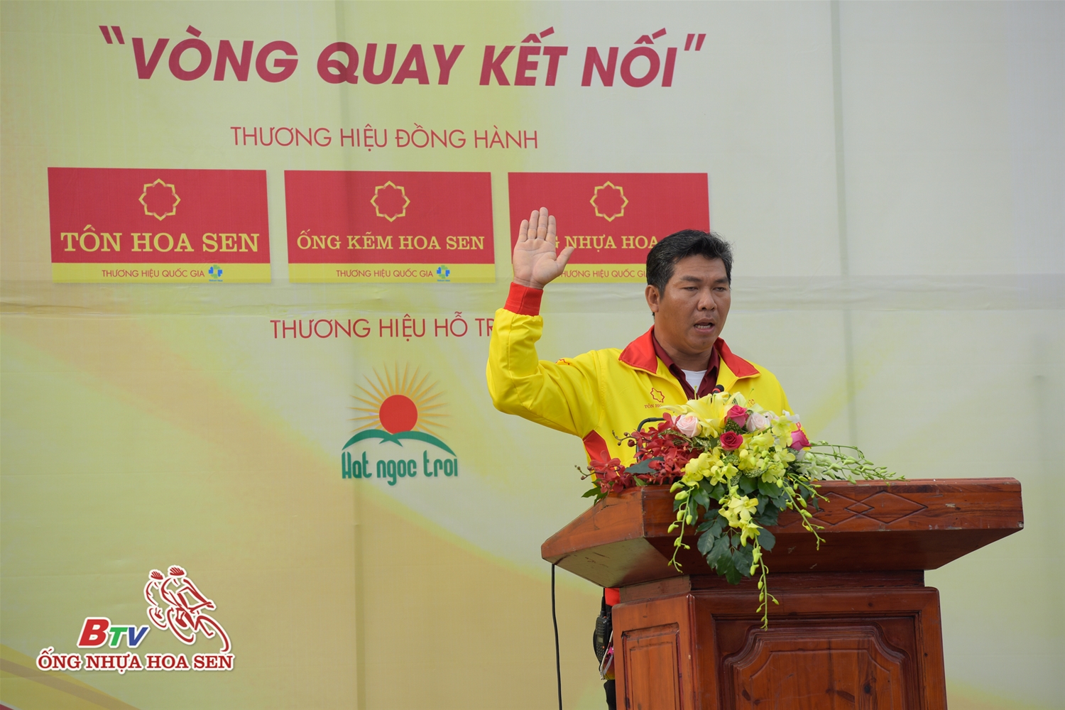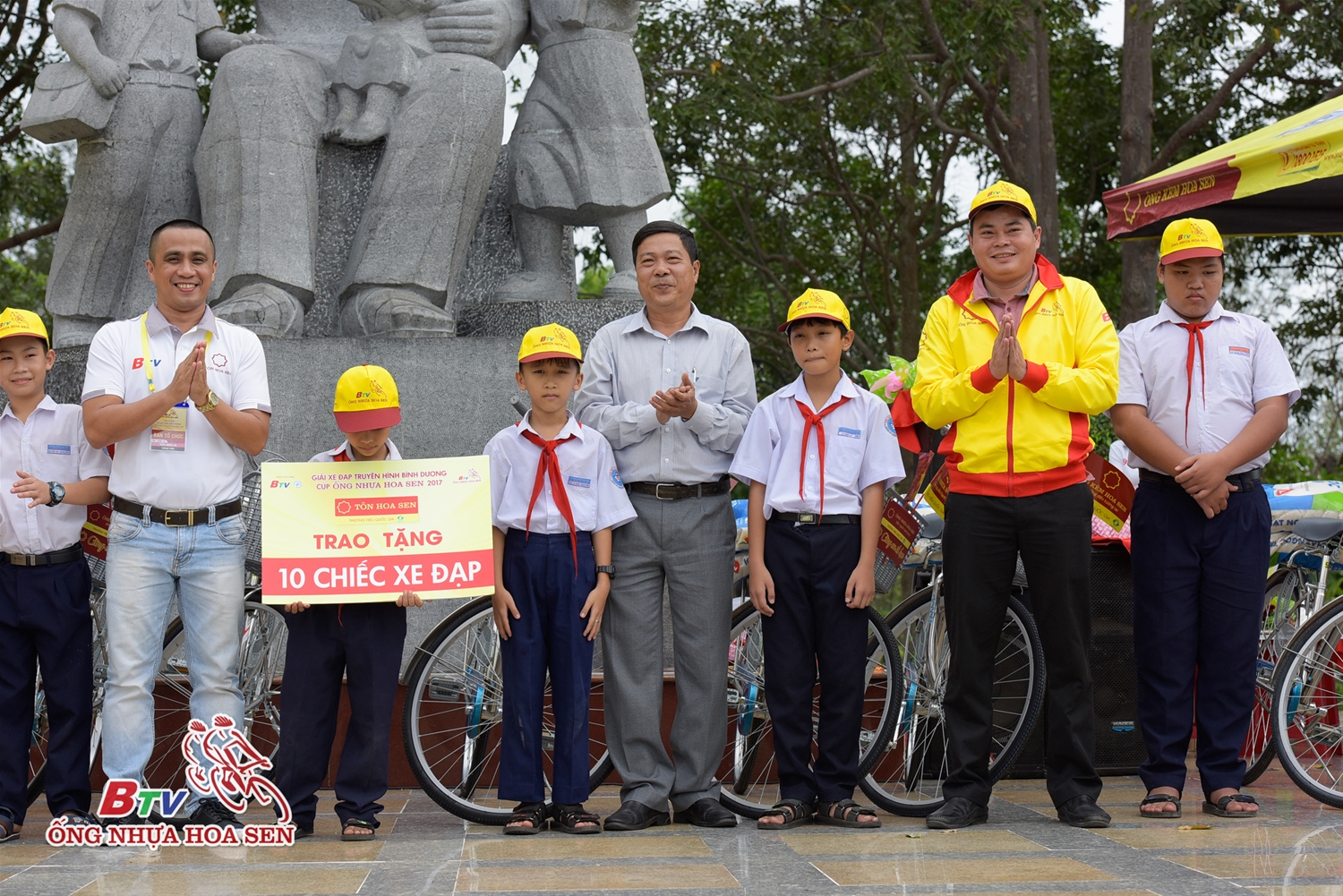 Ông Trần Ngọc Chu – Tổng giám đốc Tập đoàn Hoa Sen – Đại diện Nhà tài trợ giải đua đã tham gia lễ khai mạc. Trong chương trình, Tập đoàn Hoa Sen đã trao tặng 10 chiếc xe đạp và 200 kg gạo cho các em học sinh vượt khó học tốt tại TX Dĩ An, tỉnh Bình Dương.