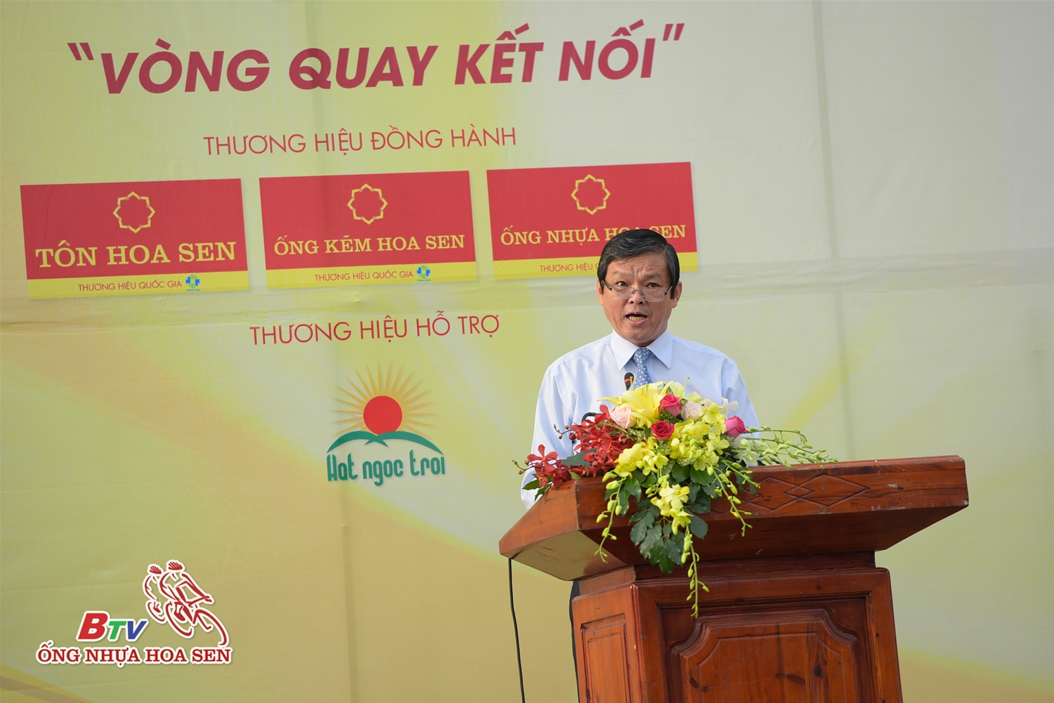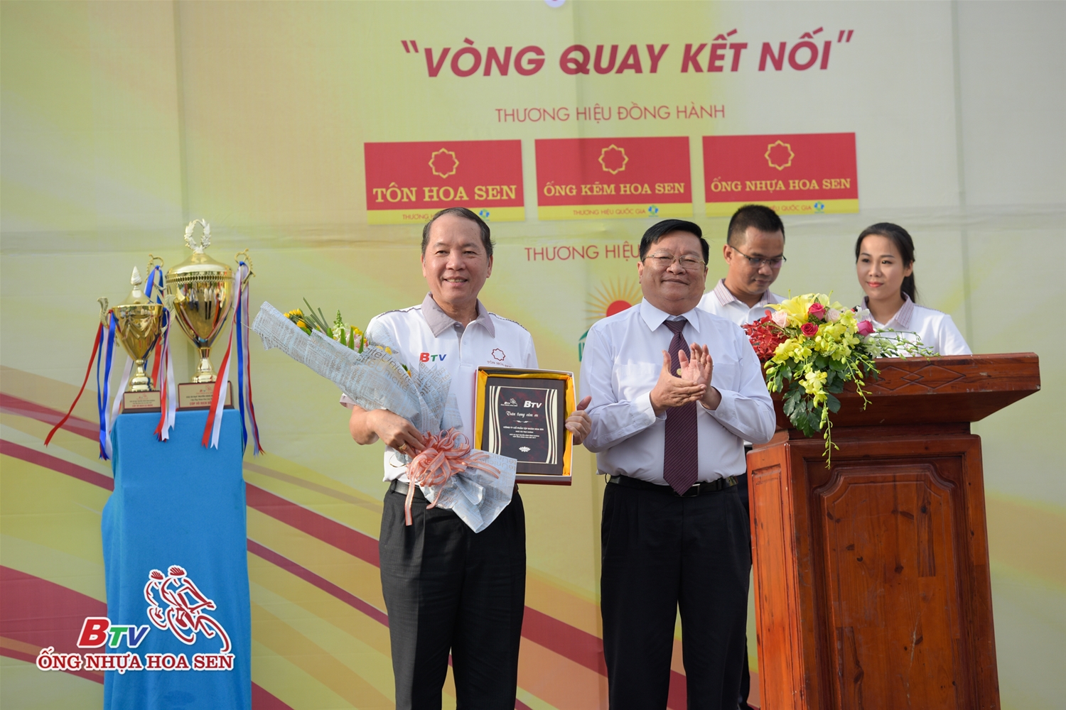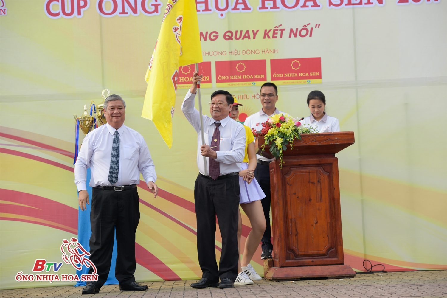 Ông Trần Ngọc Chu – Tổng giám đốc Tập đoàn Hoa Sen – Đại diện Nhà tài trợ giải đua đã tham gia lễ khai mạc. Trong chương trình, Tập đoàn Hoa Sen đã trao tặng 10 chiếc xe đạp và 200 kg gạo cho các em học sinh vượt khó học tốt tại TX Dĩ An, tỉnh Bình Dương.