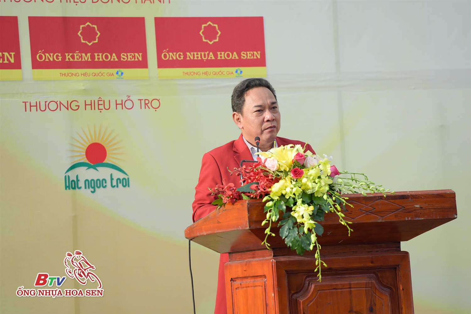 Ông Trần Ngọc Chu – Tổng giám đốc Tập đoàn Hoa Sen phát biểu tại Lễ khai mạc giải đua
