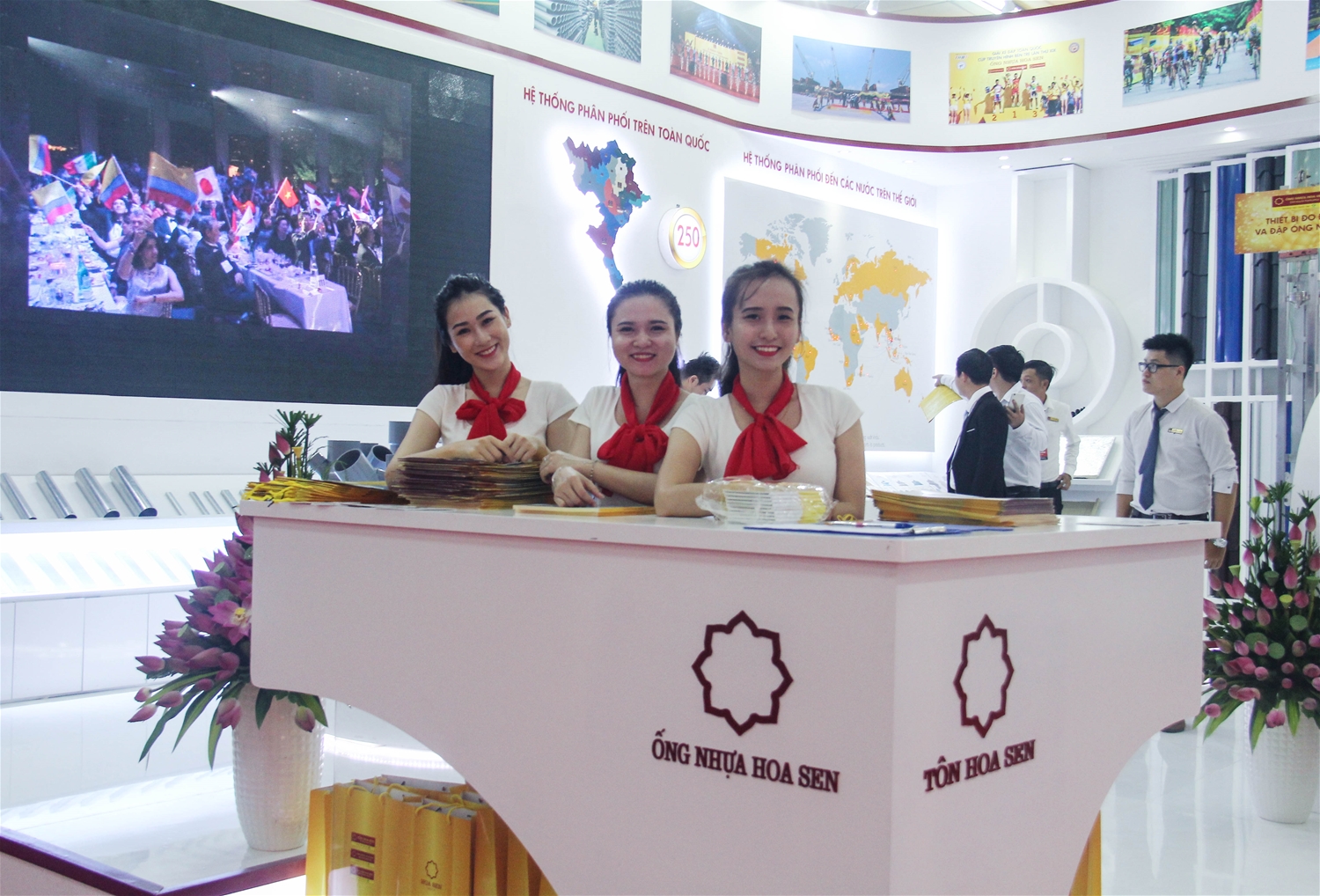 Gian hàng tập đoàn Hoa Sen được đánh giá cao bởi vẻ tinh tế và sang trọng