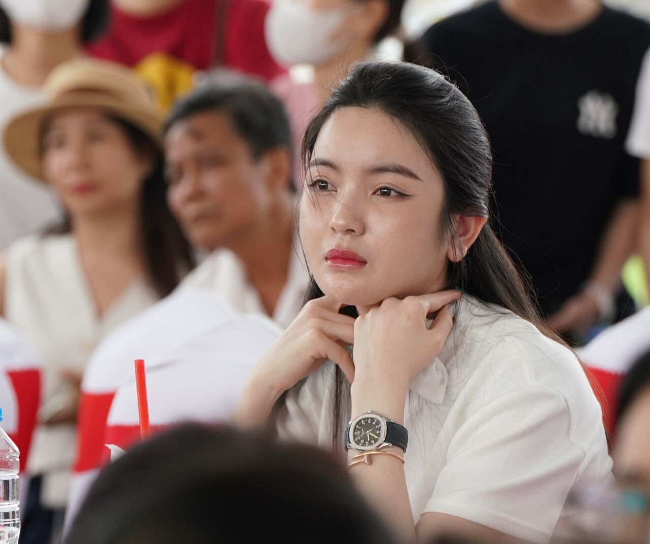 Ngồi dưới hàng ghế khán giả, Chu Thanh Huyền đã chăm chú theo dõi chương trình, hết mình ủng hộ Quang Hải và các em nhỏ. “Mong rằng anh Hải sẽ cố gắng hết sức trong các thử thách, mang lại thành tích tốt nhất cho các em nhỏ trong chương trình. Hôm nay tôi cũng muốn đưa con theo nhưng vì ba mẹ đi sớm quá, từ khoảng 4h30’ đã đi nên không đưa con đi theo được”, bà xã Quang Hải chia sẻ.