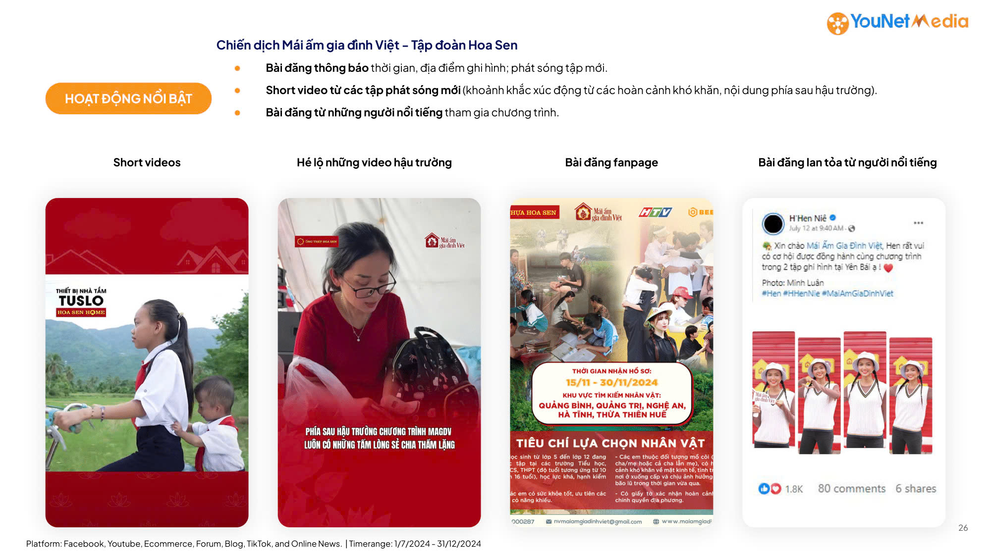 Chương trình đã chạm đến cảm xúc của đông đảo người dùng mạng xã hội với gần 400.000 lượt thảo luận, trong đó đa số các thảo luận mang tính tích cực. Đây không chỉ là một hoạt động chương trình thiện nguyện đơn thuần mà còn là hành trình lan tỏa yêu thương thông qua các câu chuyện truyền thông nhân văn. Một trong số những kênh truyền thông nổi bật về chương trình như: Tiktok Mái ấm gia đình Việt, Tiktok Tôn Hoa Sen, Facebook Mái ấm gia đình Việt, Tiktok Hoa Sen Group, Tiktok Nghệ sỹ của công chúng, Tiktok Bee Comm, Facebook Bee Comm Network.