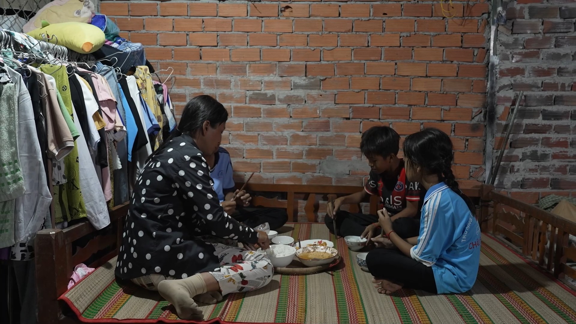 Mỗi ngày, chị Ni phải dậy từ 4h30 sáng để đi bán vé số. Đến khi nào bán hết hơn 200 tờ vé số thì chị mới về nhà. Chị thường nấu sẵn cơm rồi để các con ở nhà tự chăm sóc lẫn nhau. Có những ngày trở bệnh nhưng chị Ni không dám nghỉ bán vì lo 3 đứa con sẽ đói.