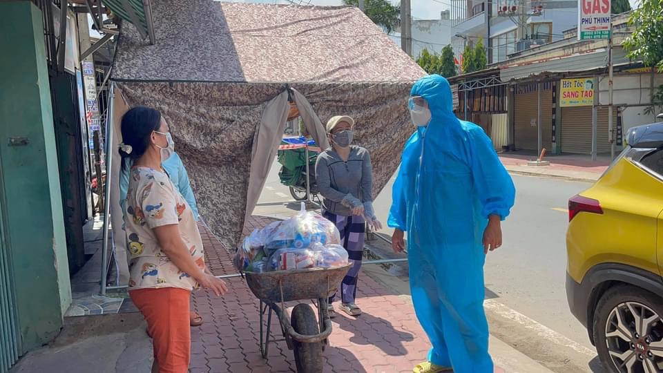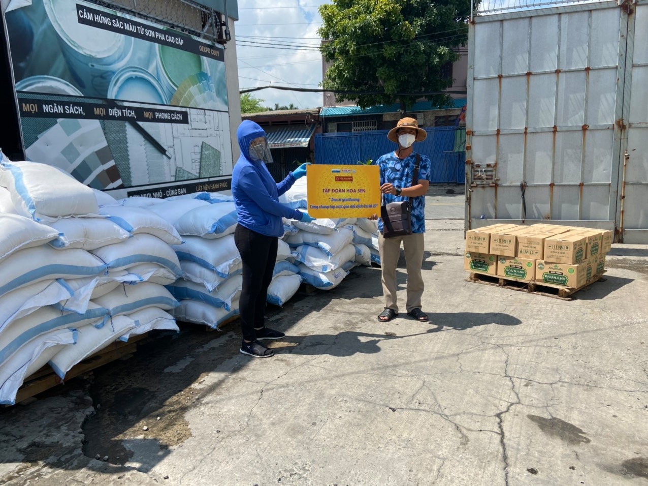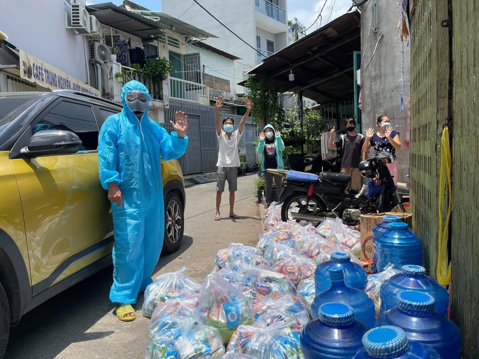 • 200 phần quà: 1 thùng mì, bột nêm,nước tương, gạo.. cho hộ dân gặp khó khăn phong toả tại phường 10- Q.Phú nhuận