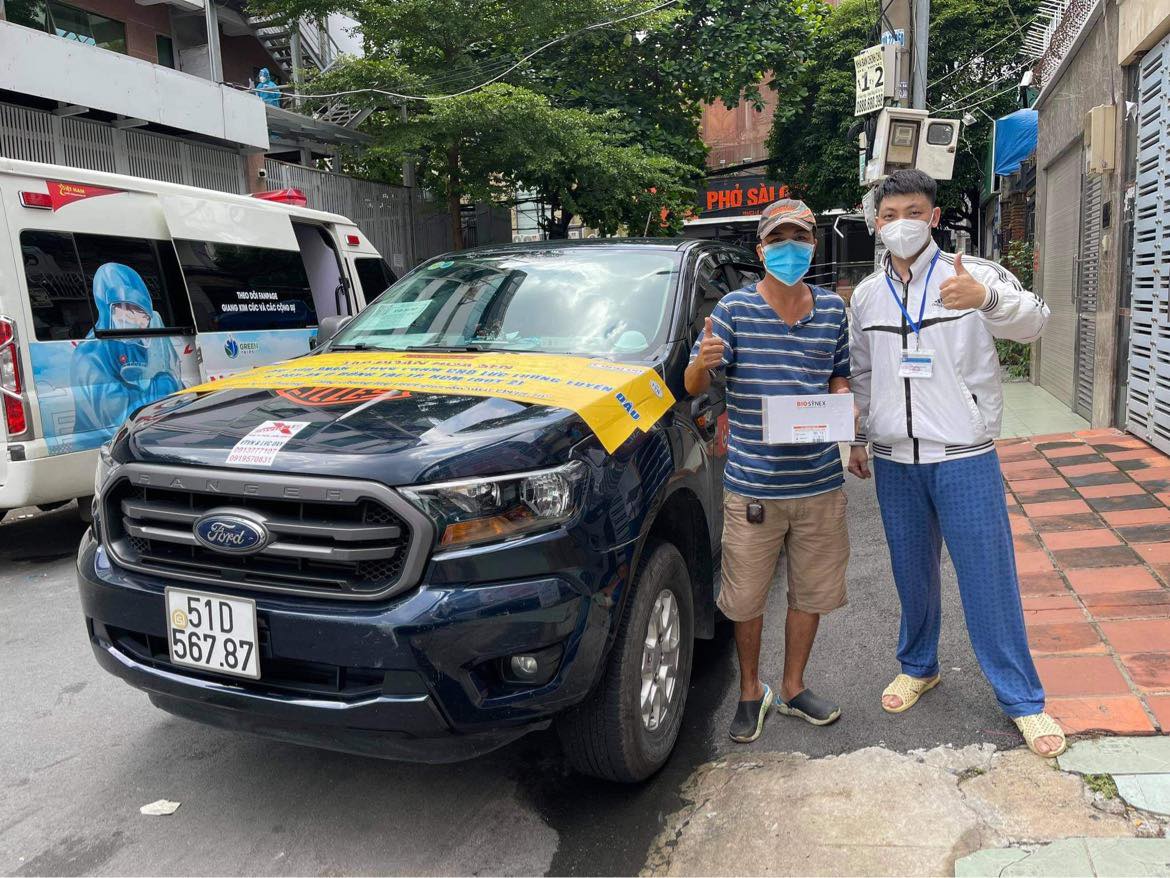 4. Trao xe tải 10 tấn hàng rau, gạo cho bà con tại khu nhà trọ đang khó khăn tại Thuận An, Bình Dương thông qua Hội chữ thập đỏ Bình Dương