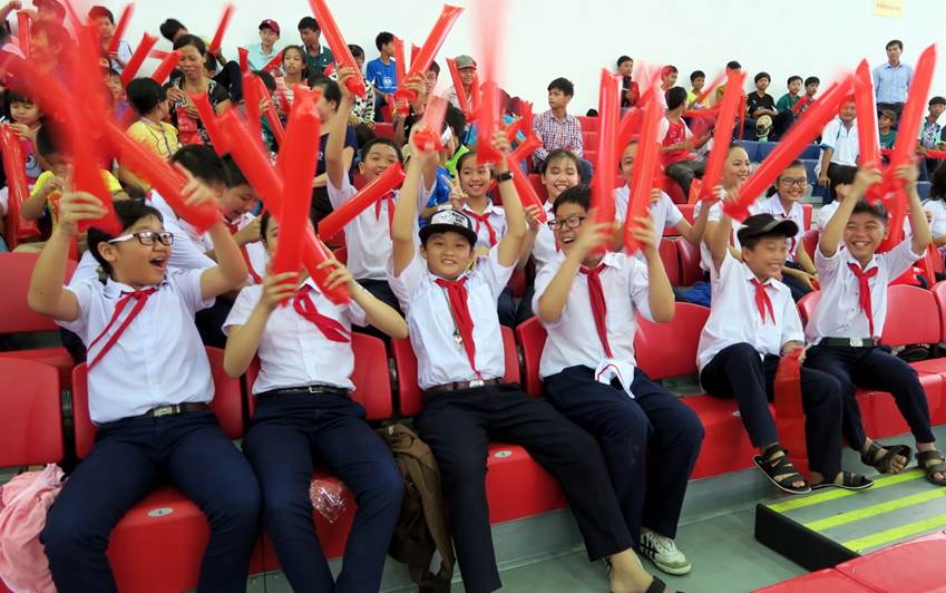 Các em nhỏ hào hứng cổ động cho các bạn có hoàn cảnh đặc biệt đồng trang lứa