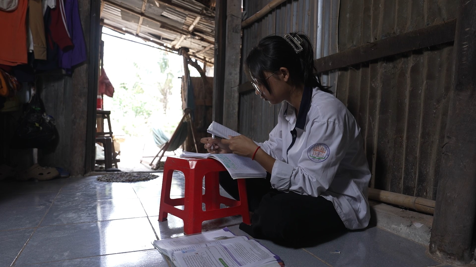 Bà ngoại của Châu đã lớn tuổi, không có công việc ổn định nên ai thuê gì làm đó, thu nhập khá bấp bênh. Mỗi tháng bà cũng chỉ làm được khoảng 5 – 10 ngày, mỗi ngày kiếm được khoảng 100.000 – 200.000 đồng. “Ai mướn dặm lúa thì tôi đi dặm lúa, mướn mần cỏ thì tôi đi mần cỏ, miễn có tiền cho cháu đi học là được. Có khi tôi làm mà không có ngày chủ nhật để nghỉ”, bà ngoại em Hồng Châu chia sẻ.