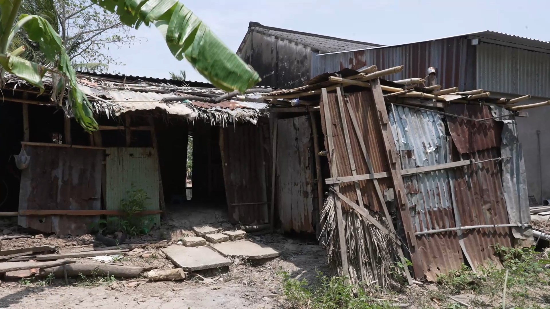Hai bà cháu Hồng Châu đang sống trong căn nhà cũ, được địa phương hỗ trợ xây. Ngôi nhà chưa hoàn thiện, không có nhà vệ sinh nên mỗi tối hai bà cháu lại soi đèn đi ở nhà vệ sinh dựng tạm bên bờ sông vô cùng nguy hiểm và bất tiện.