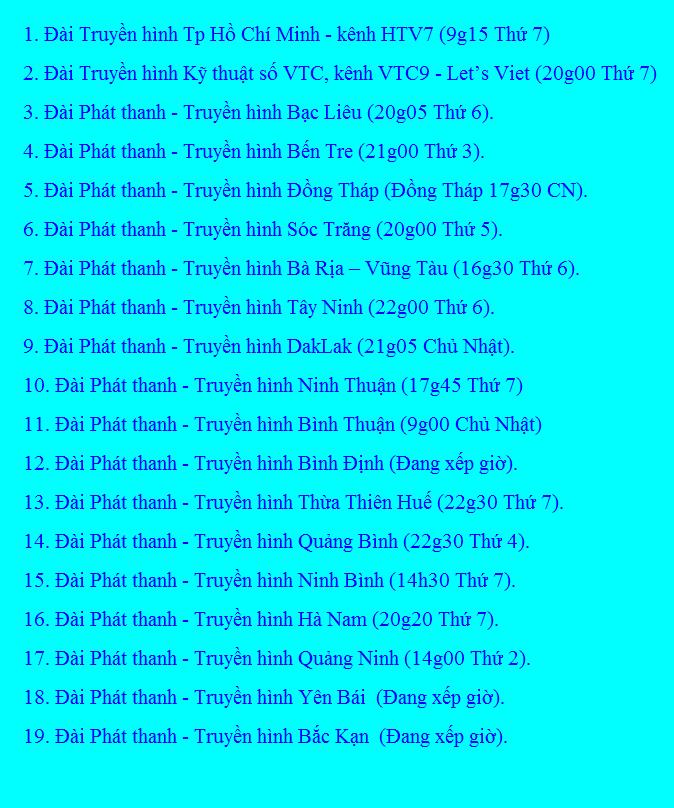 Chương trình dự kiến được phát sóng số đầu tiên vào cuối tháng 1 năm 2018. Dưới đây là danh sách của các Đài truyền hình phát sóng chương trình: