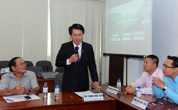 Ông Vũ Văn Thanh – Phó TGĐ Tập đoàn Hoa Sen đại diện nhà tài trợ Kim Cương phát biểu tại lễ công bố chương trình.