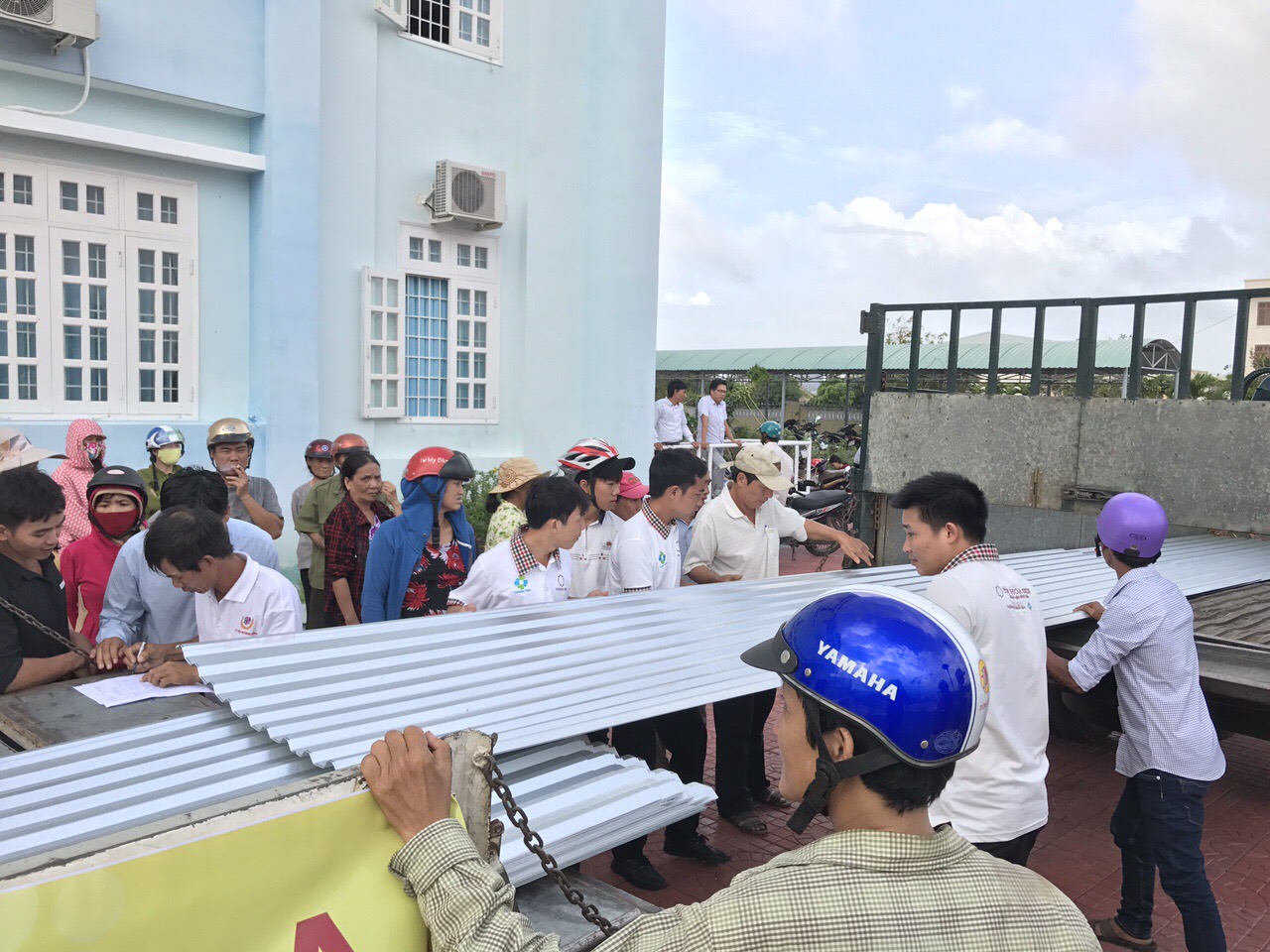 Người dân nhận tôn về sửa chữa nhà cửa bị tốc mái sau bão.
