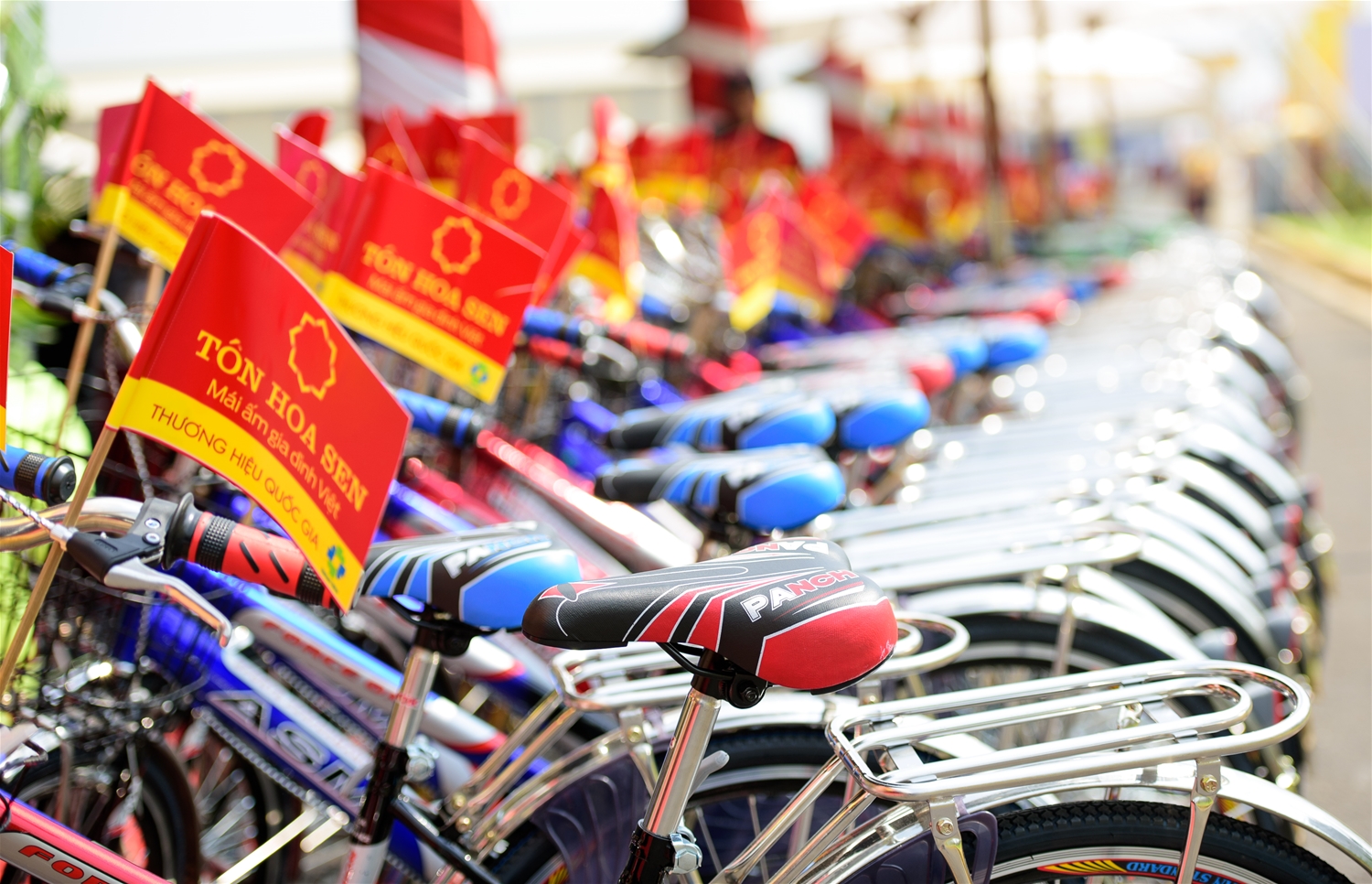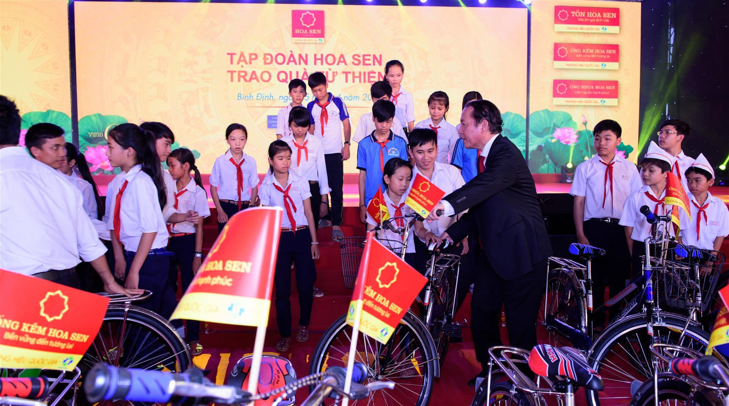 Tập đoàn Hoa Sen dành tặng 50 chiếc xe đạp cho 50 em học sinh nghèo hiếu học của tỉnh Bình Định