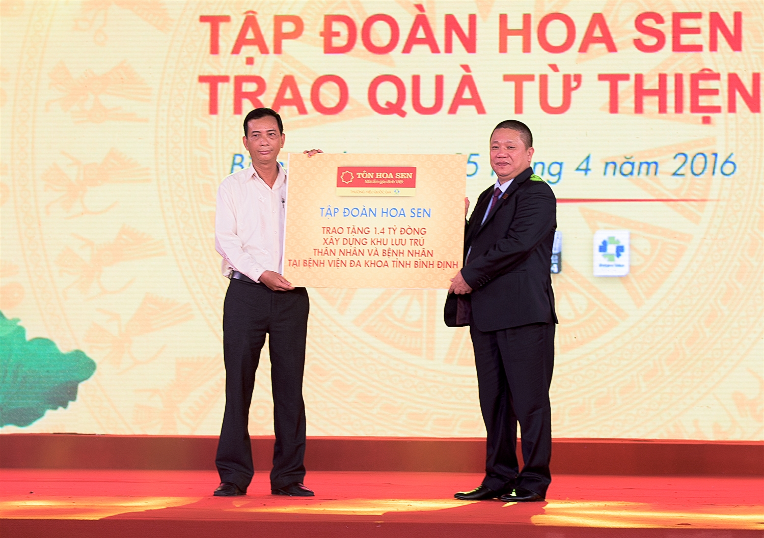 Tập đoàn Hoa Sen đã trao tặng 1,4 tỷ đồng xây dựng khu lưu trú thân nhân và bệnh nhân tại Bệnh viện Đa khoa tỉnh Bình Định