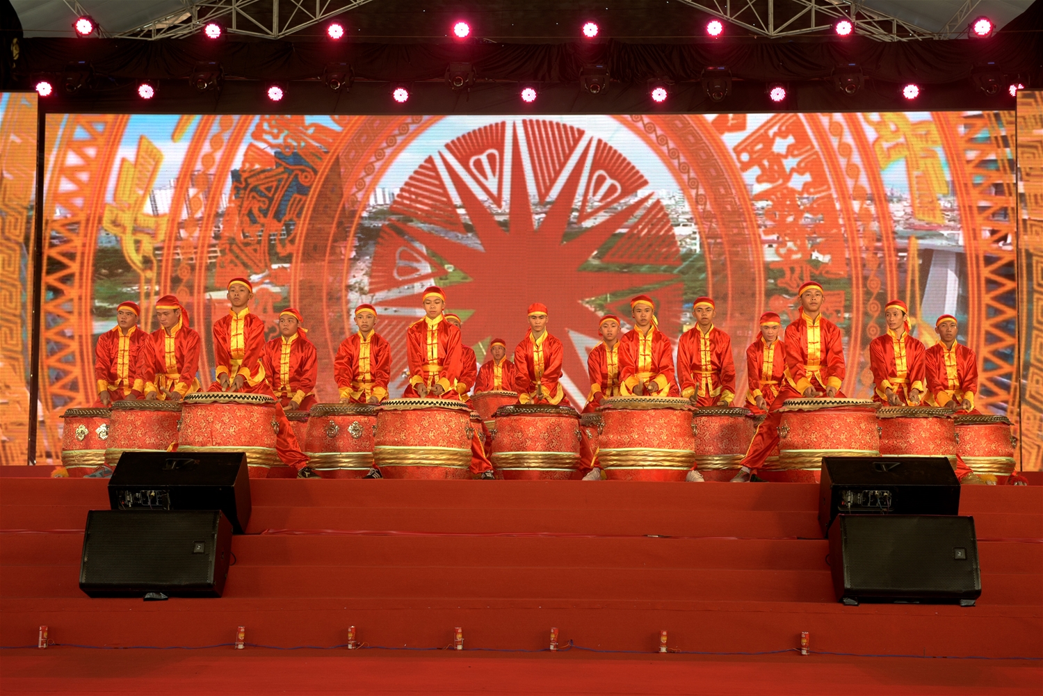 Tiếp nối chương trình là màn trình diễn Thập bát trống của đội lân rồng Hằng Anh Đường trước khi tiến hành nghi thức cắt băng khánh thành