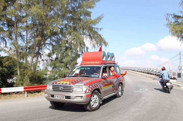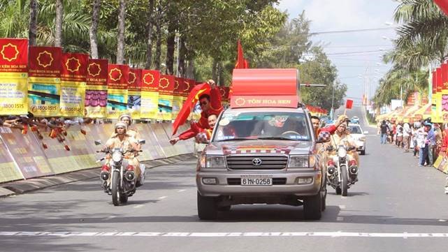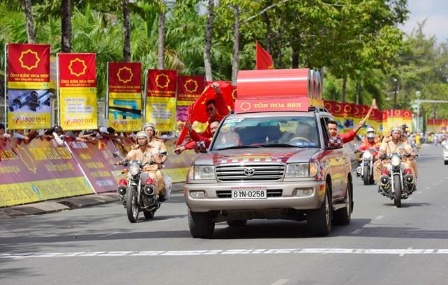 Xe dẫn đầu của Tập đoàn Hoa Sen – nhà tài trợ chính của chương trình luôn đồng hành cùng đoàn đua trên mỗi hành trình