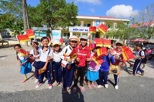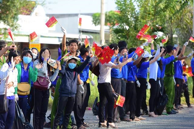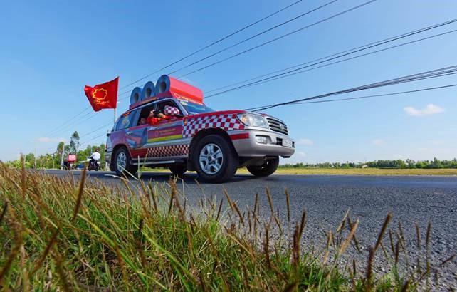 Đoạn đường hẹp gây nhiều khó khăn cho các tay đua, tuy nhiên sự cổ vũ của nhân viên chi nhánh Vĩnh Thuận là nguồn động lực để đoàn đua tiến về phía trước