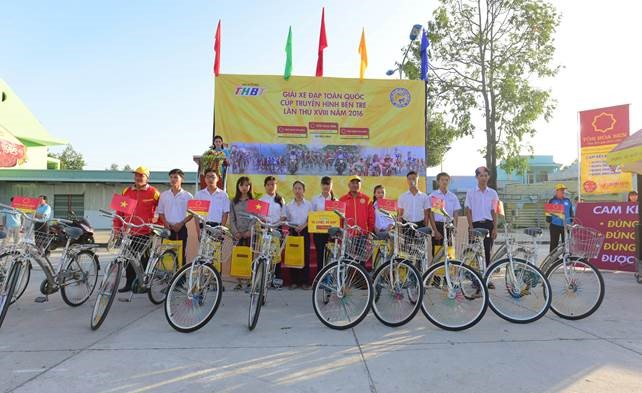 Dịp này, Tập đoàn Hoa Sen đã trao 10 xe đạp cho các em học sinh nghèo, vượt khó học giỏi của trường THPT Nguyễn Hùng Sơn tại tỉnh Kiên Giang. Như vậy, từ đầu giải đua đến giờ, 30 chiếc xe đạp của Hoa Sen đã được trao đến tay các em nghèo hiếu học tại các đích đến đoàn đua đi qua. Hành động này như tiếp thêm sức mạnh cho các em thêm tin yêu vào cuộc sống và nỗ lực vượt qua hoàn cảnh.
