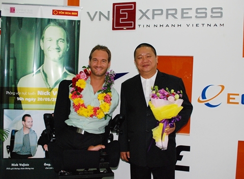 Tại Nghệ An, chàng trai không tay chân Nick Vujicic đã chia sẻ về cuộc đời mình và mong muốn sẽ tạo được nhiều cảm hứng đến những người khác, đặc biệt là những người có số phận không may.
