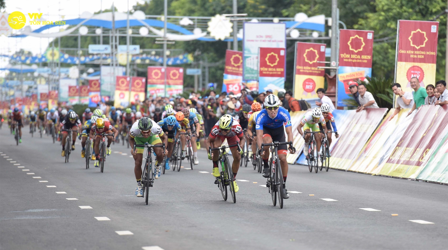 Các tay đua chính thức bắt đầu thi đấu chặng 12 của Giải xe đạp Quốc tế VTV Cúp Tôn Hoa Sen 2018