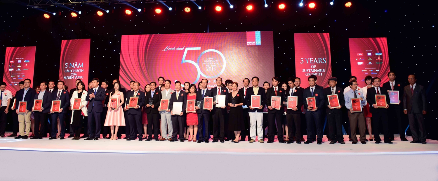 Trước đó, tại lễ vinh danh 2013 và 2014, Tập đoàn Hoa Sen đã có mặt trong bảng xếp hạng này . Như vậy , đây là năm thứ 3 liên tiếp Tập đoàn Hoa Sen đạt được danh hiệu “T op 50 công ty kinh doanh hiệu quả nhất Việt Nam”.
