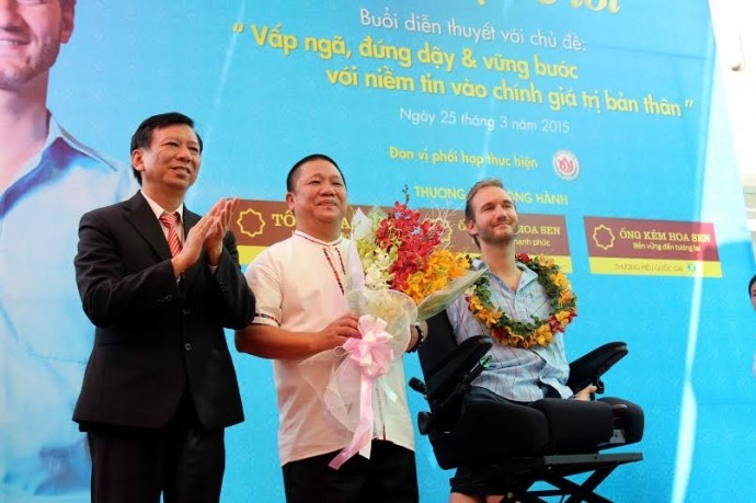 Sáng 25/3, tại trường THPT – THCS Hoa Sen (quận 9, TP HCM) đã diễn ra buổi diễn thuyết của diễn giả Nick Vujicic. Nick Vujicic được biết đến là một nhân vật không tay, không chân, có nghị lực phấn đấu phi thường, đã sống và vươn lên mạnh mẽ, vượt qua mọi bất hạnh của dị tật.