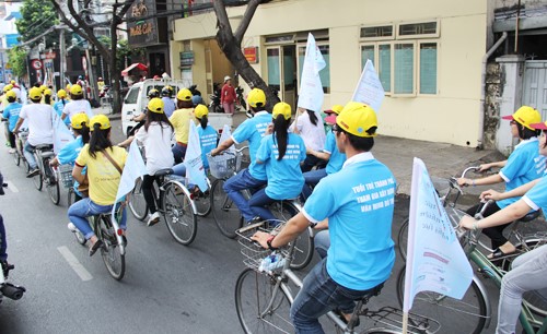 Hơn 100 sinh viên các trường đại học tại TP.HCM đã nhiệt tình tham gia buổi đạp xe hưởng ứng chương trình “Tỏa sáng nghị lực Việt” tại các con đường trung tâm thành phố vào sáng 19/4/2014.