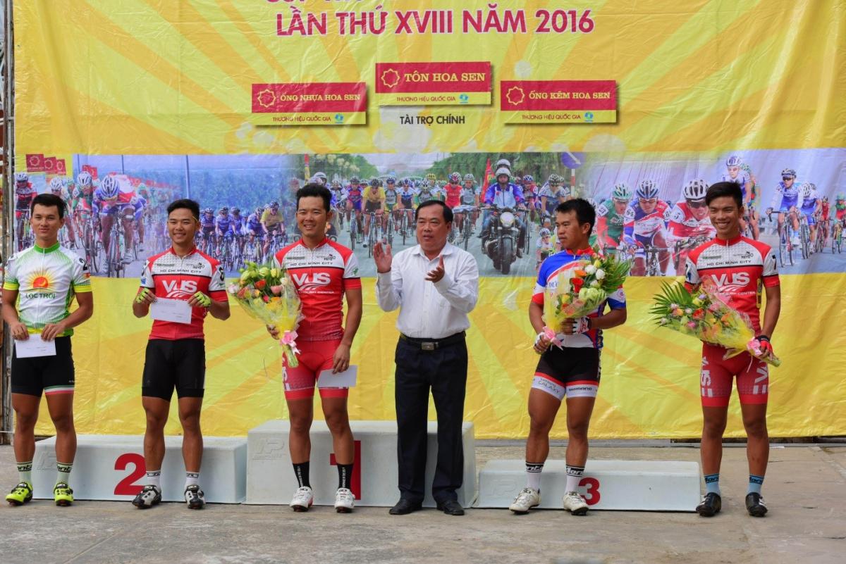 Ban tổ chức trao giải đồng đội cho các đội đua đạt thành tích xuất sắc trong chặng đua thứ 3: Đội VUS1 TPHCM, Tập đoàn Lộc trời An Giang, Dược Domesco Đồng Tháp